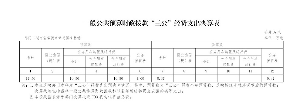 常德市常德国有林场2021年一般公共预算财政拨款“三公”经费支出决算表