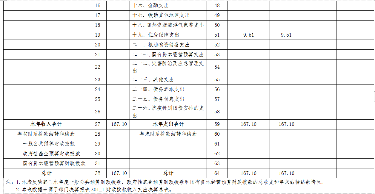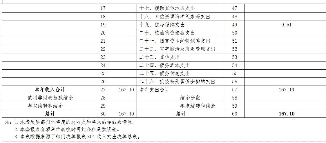 2021年度收入总计167.10万元。与上年相比,增加43.01万元,增长35%,主要是因为人员经费增加。支出总计167.10万元。与上年相比,增加43.01万元,增长35%,主要是因为人员经费增加。