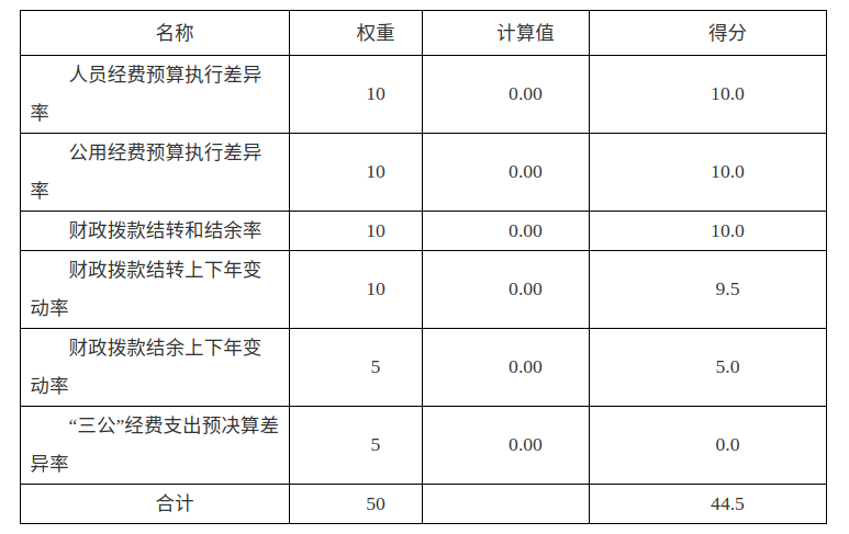 财政拨款收入预决算差异率 | 5 | 14.44 | 3.5 |