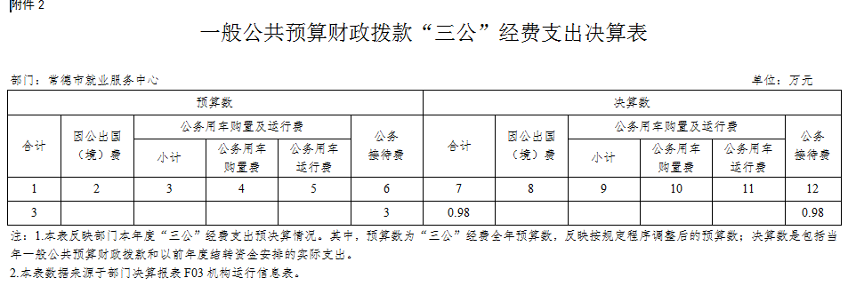 常德市就业服务中心2021年一般公共预算财政拨款“三公”经费支出决算表