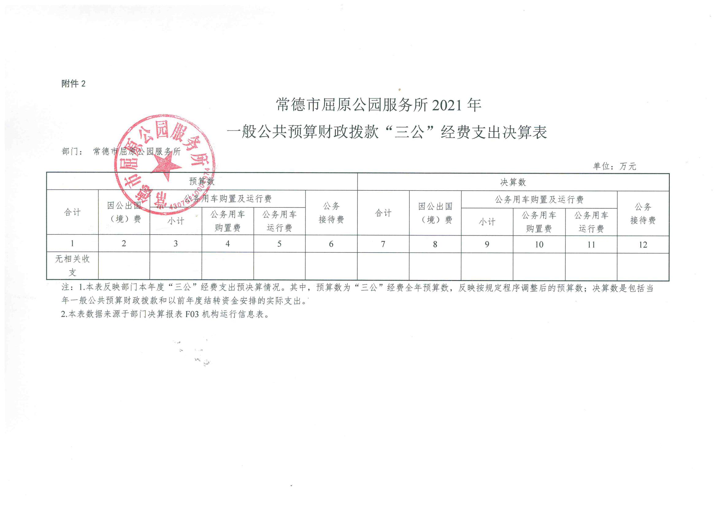 常德市屈原公园服务所2021年一般公共预算财政拨款“三公”经费支出决算表