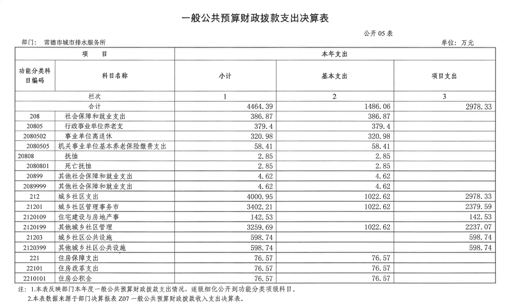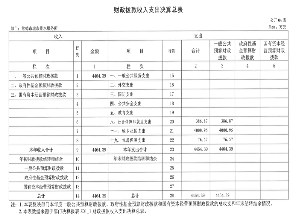202 2 年度财政拨款收、支总计 4464.39 万元 、 4464.39万元 ,与上年相比,增加 144.43 万元 、 206.09万元 ,增长 3.34 % 、增长 4.84% ,主要是因为 泵站增加,费用相应增加。