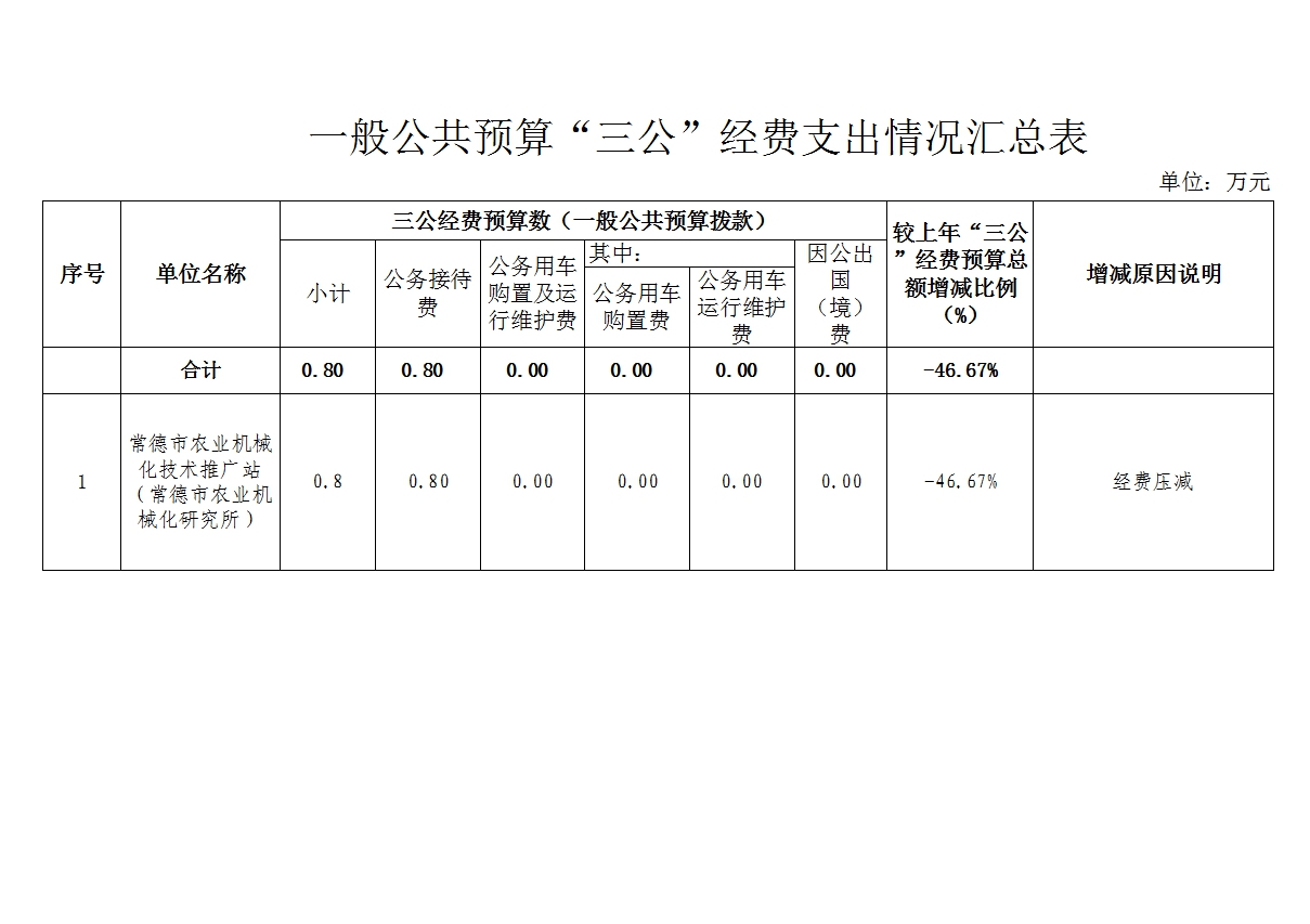 常德市农业机械化技术推广站(常德市农业机械化研究所)2025年一般公共预算“三公”经费支出表