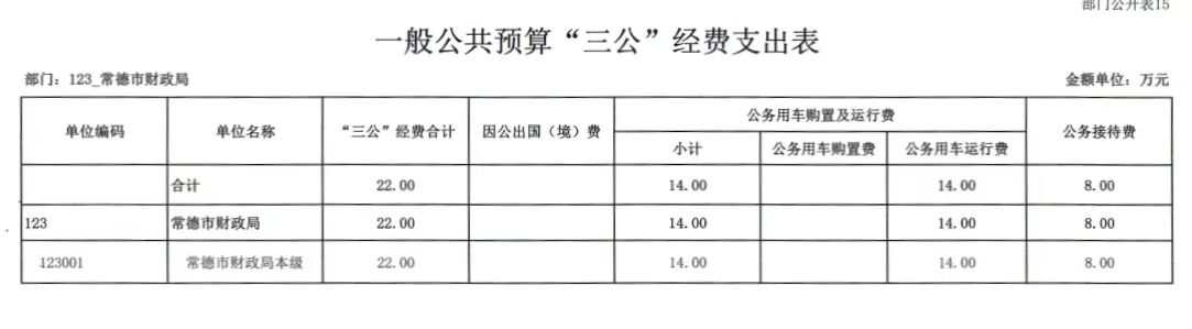 常德市市财政局2025年一般公共预算“三公”经费支出表