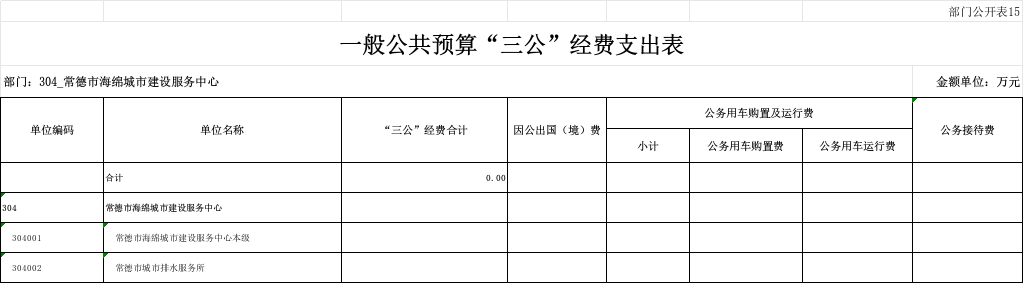 常德市海绵城市建设服务中心2025年一般公共预算“三公”经费支出表