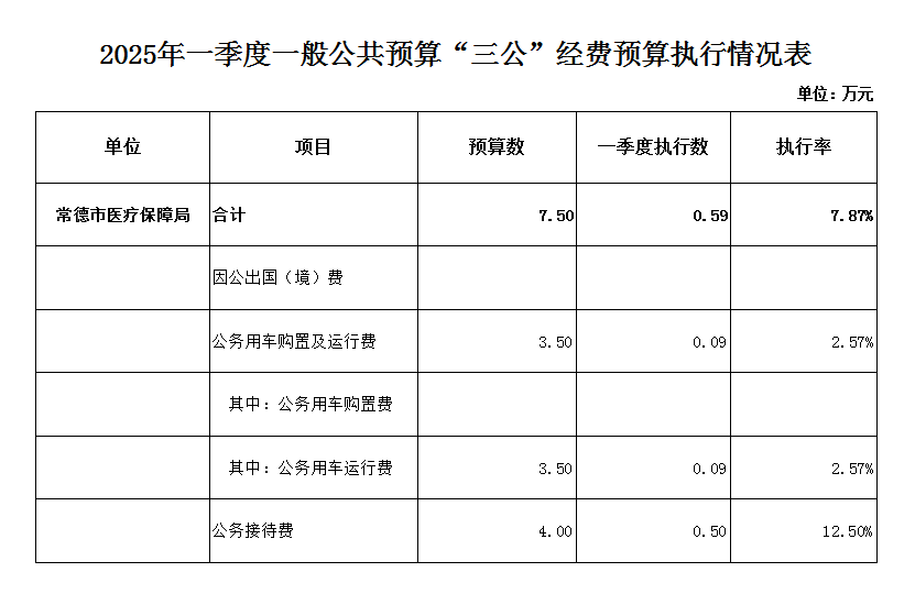 常德市医疗保障局2025年一季度一般公共预算“三公”经费预算执行情况表
