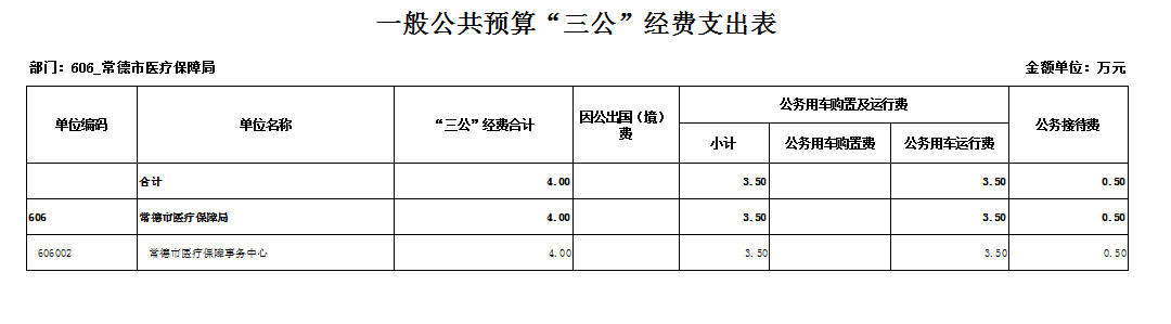 常德市医疗保障事务中心2026年一般公共预算“三公”经费支出表